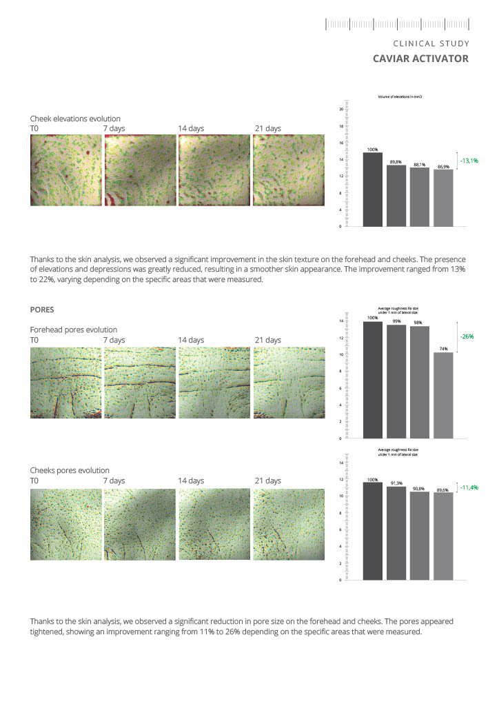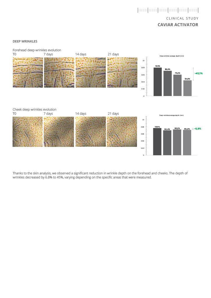 Conform studiilor clinice, utilizarea „caviar activator” după 3 săptămâni are următoarele beneficii:
