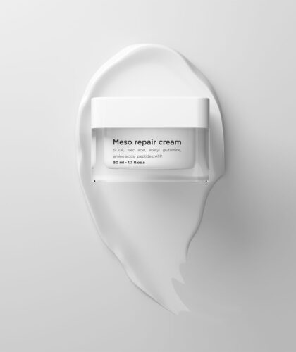 Crema reparatoare – Meso Repair Cream este o cremă care conține ingrediente active pentru mezoterapie și nu numai, reface eficient a pielea după proceduri estetice. Conține factori de creștere și peptide care ajuta la definirea contururilor fetei și îi conferă un aspect mai tineresc și mai ferm. Are proprietăți reparatoare puternice datorită complexului reparator pe bază de aminoacizi și ATP.