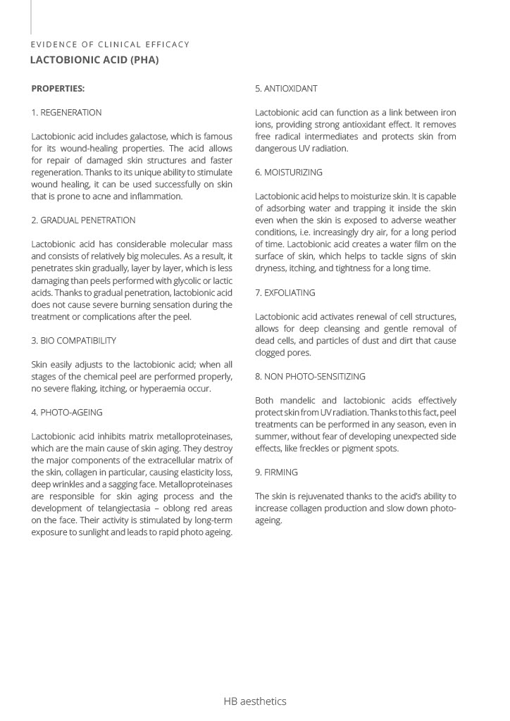 Acidul lactobionic din formulă reglează pH-ul pielii și stimulează reînnoirea celulară pentru a menține o piele sănătoasă în special după programele de peeling.