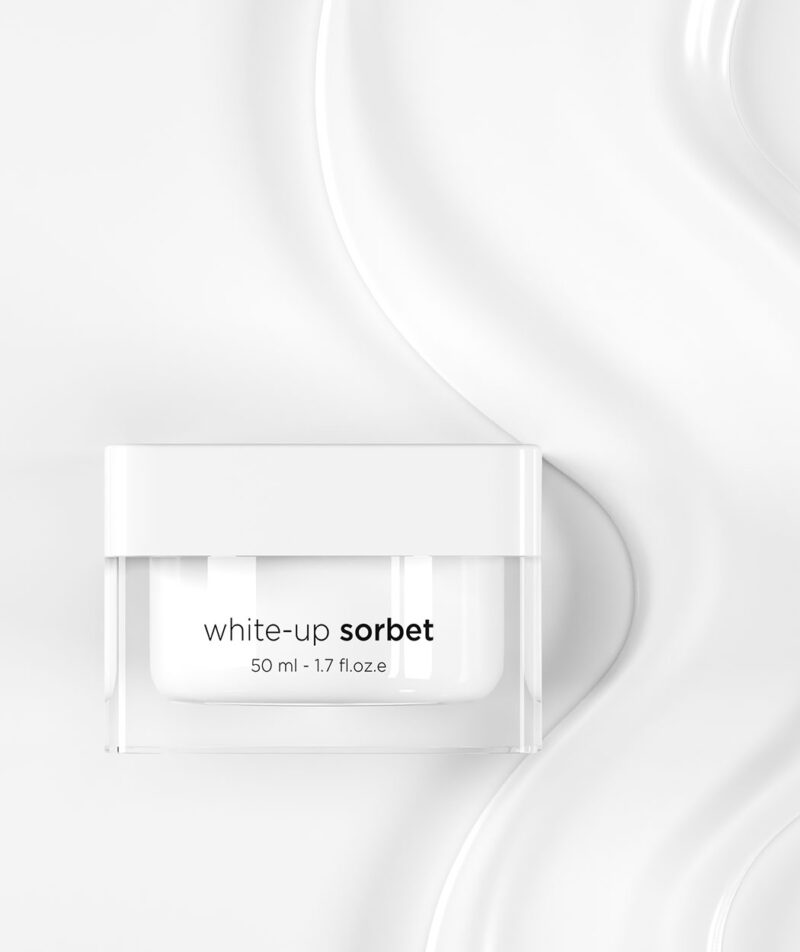 Crema anti-pigmentare – White up Sorbet este o cremă hrănitoare și hidratantă îmbunătățește textura pielii, menține un pH optim și reduce semnele foto-îmbătrânirii.